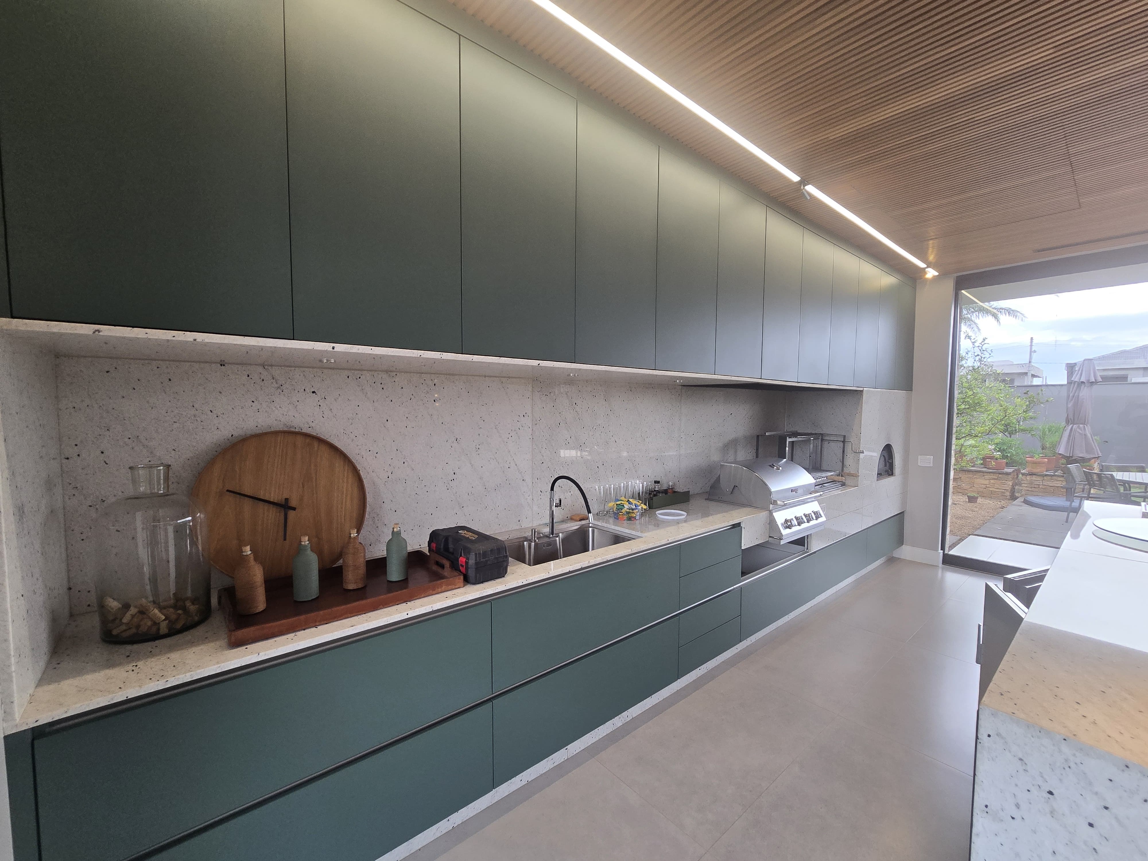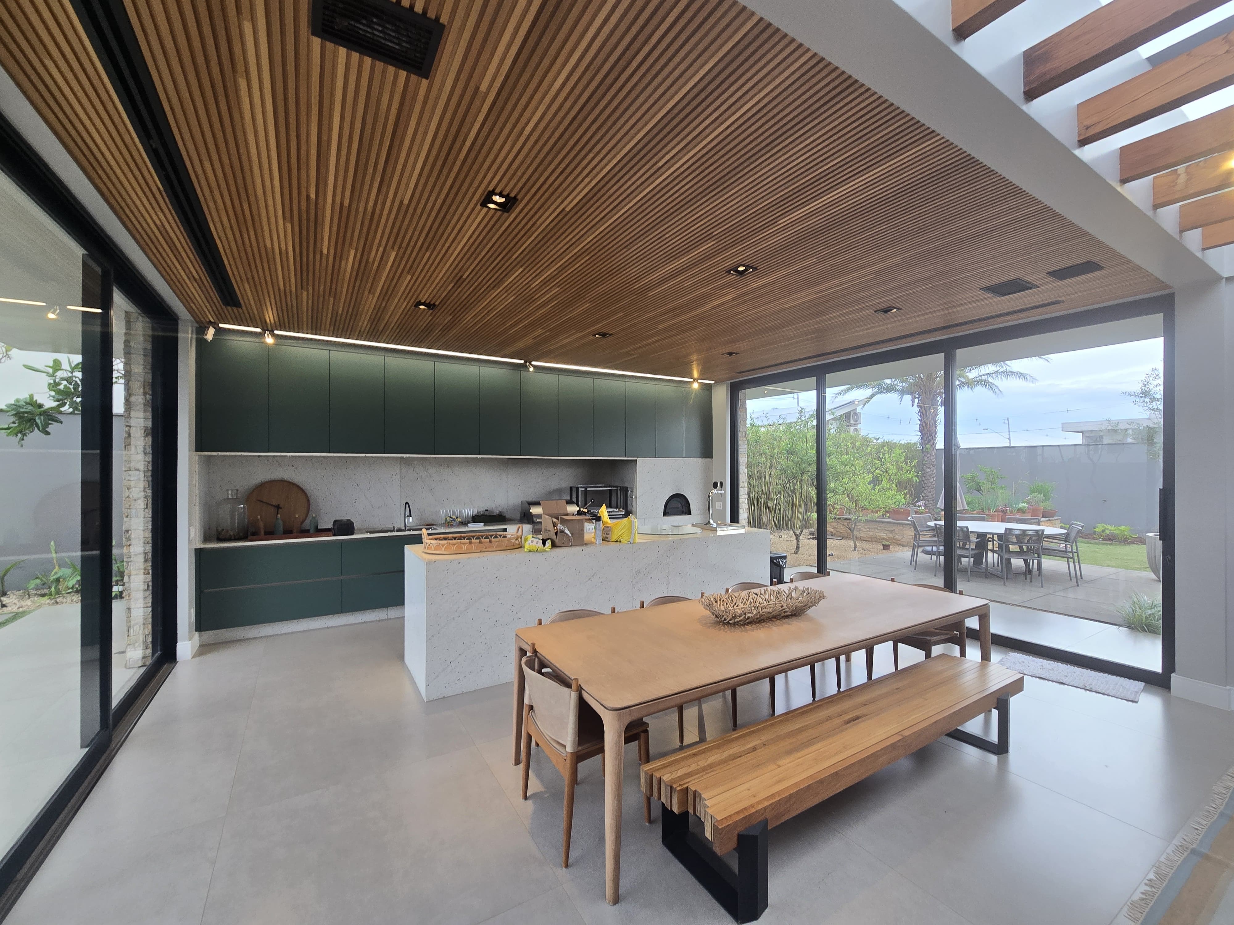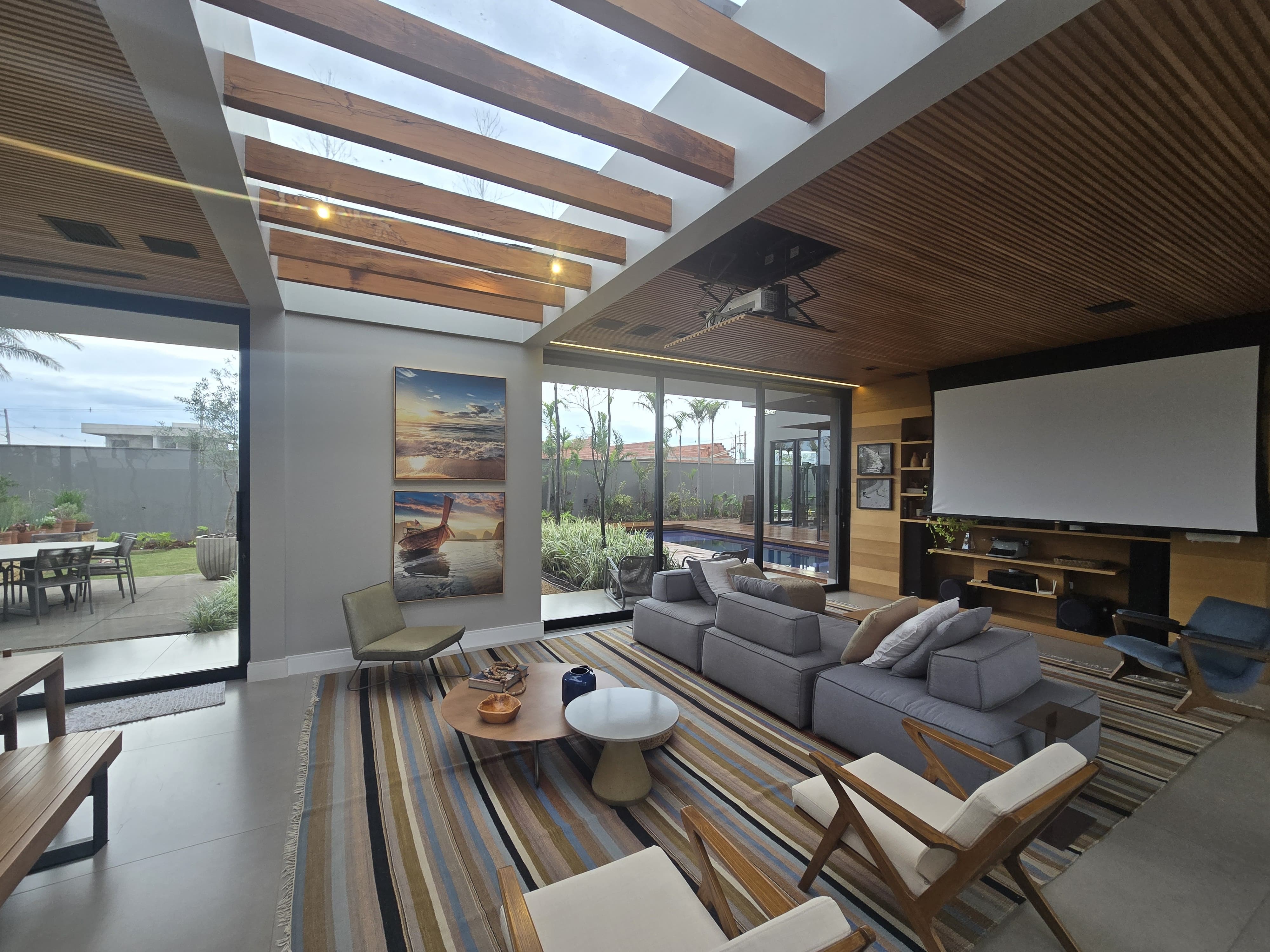 Amplo Espaço Gourmet com churrasqueira , forno de pizza , choppeira naja e projetor que desse do teto