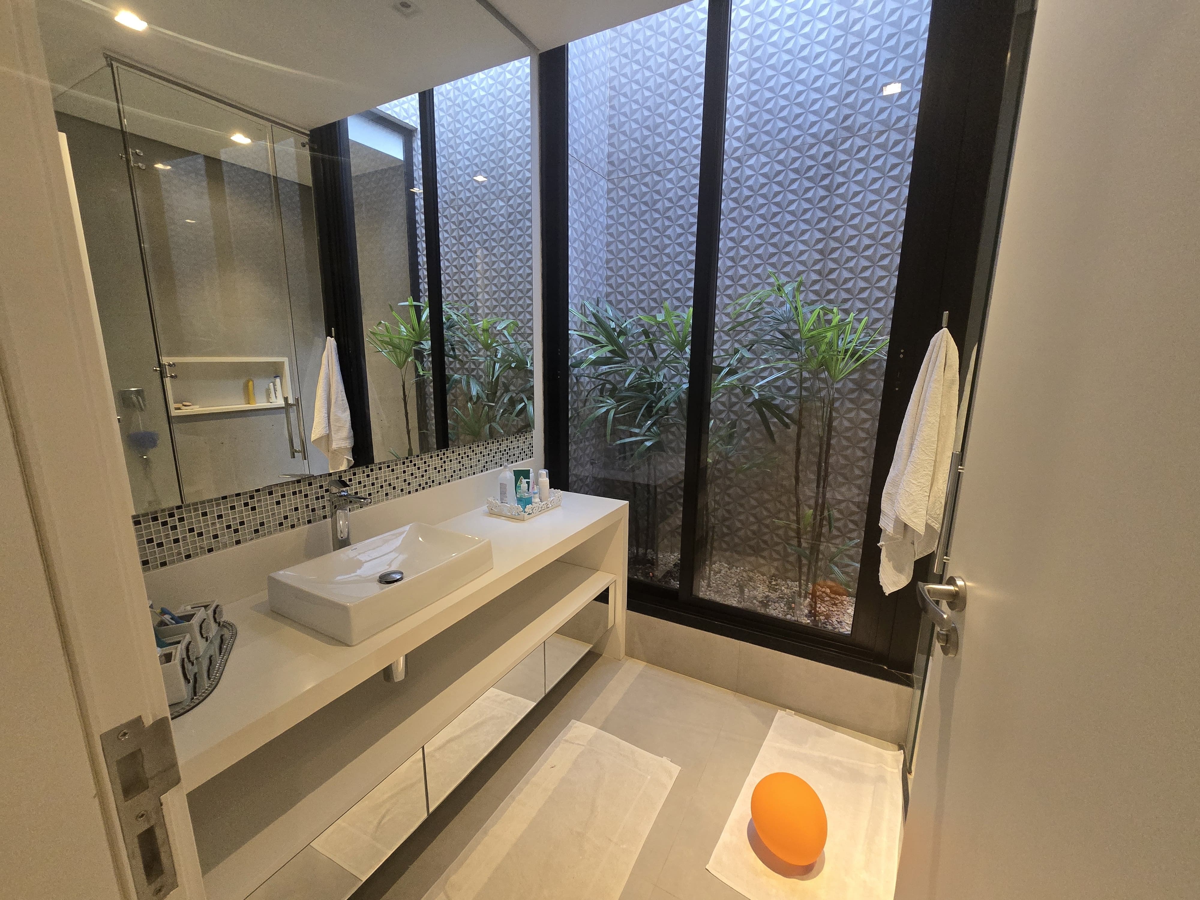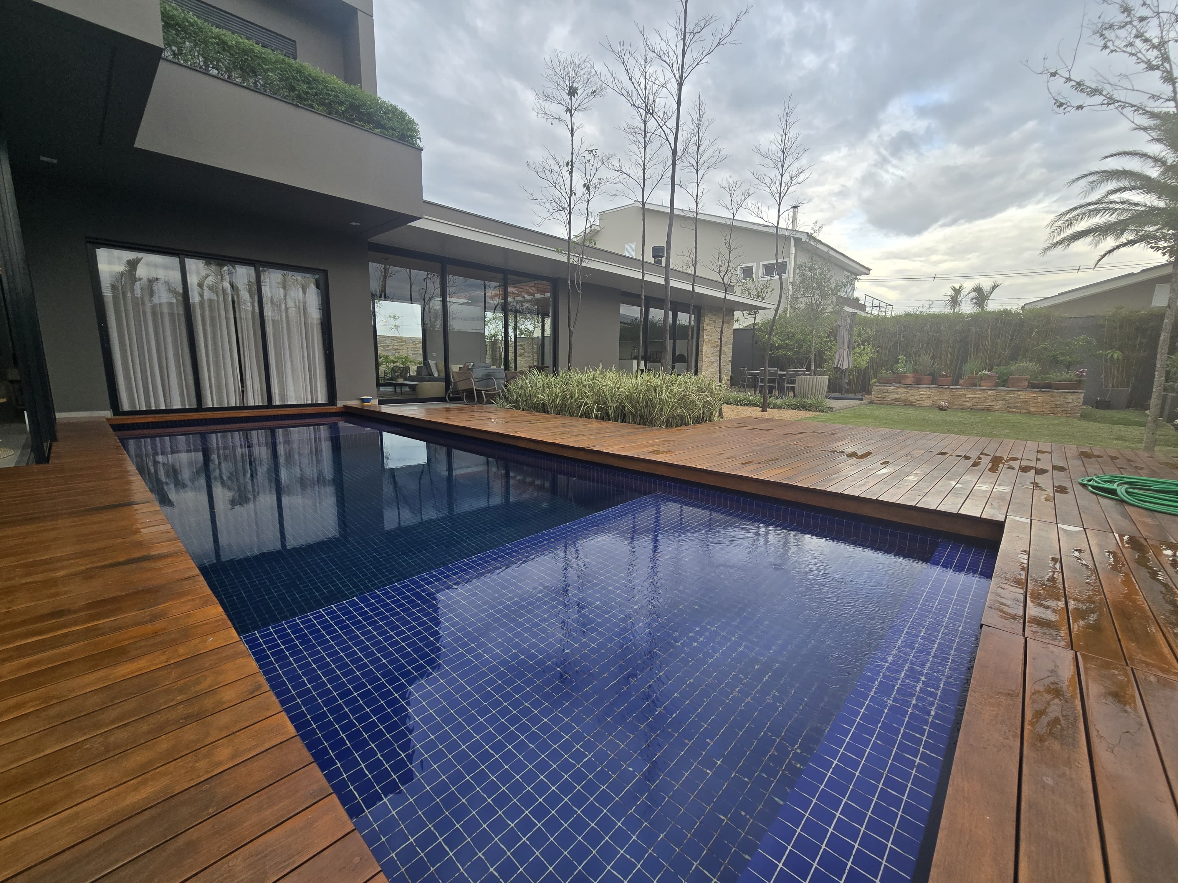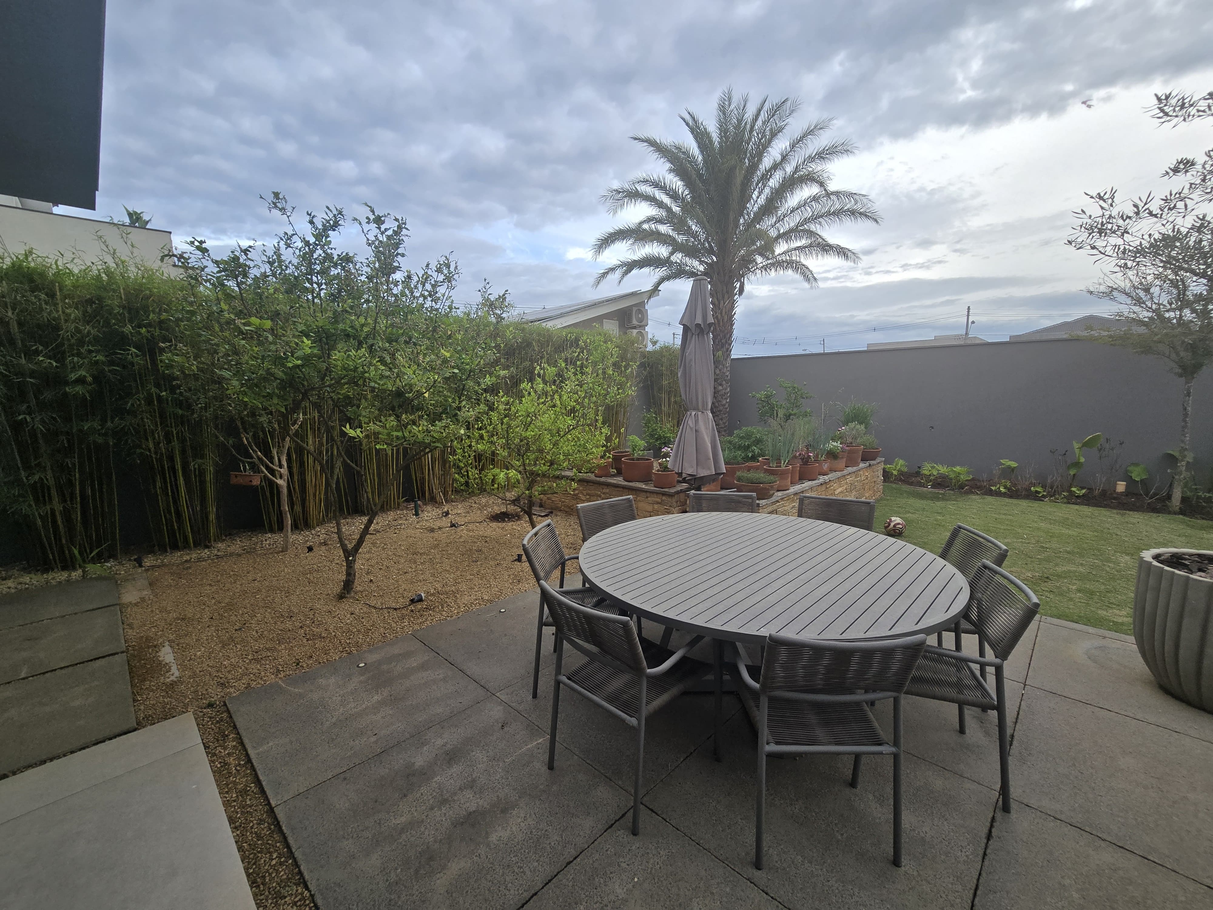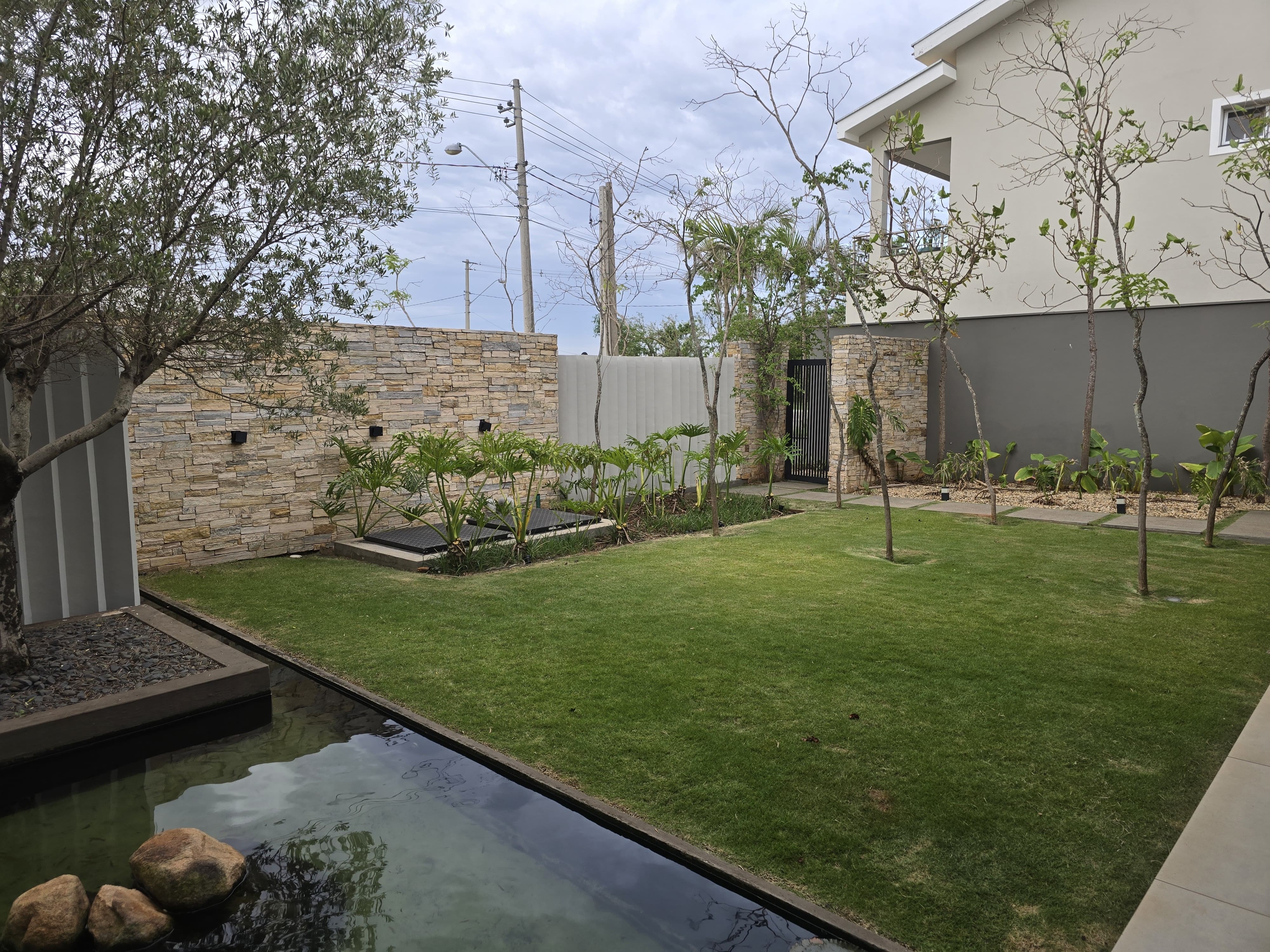 Quintal com um paisagismo com irrigação automática
