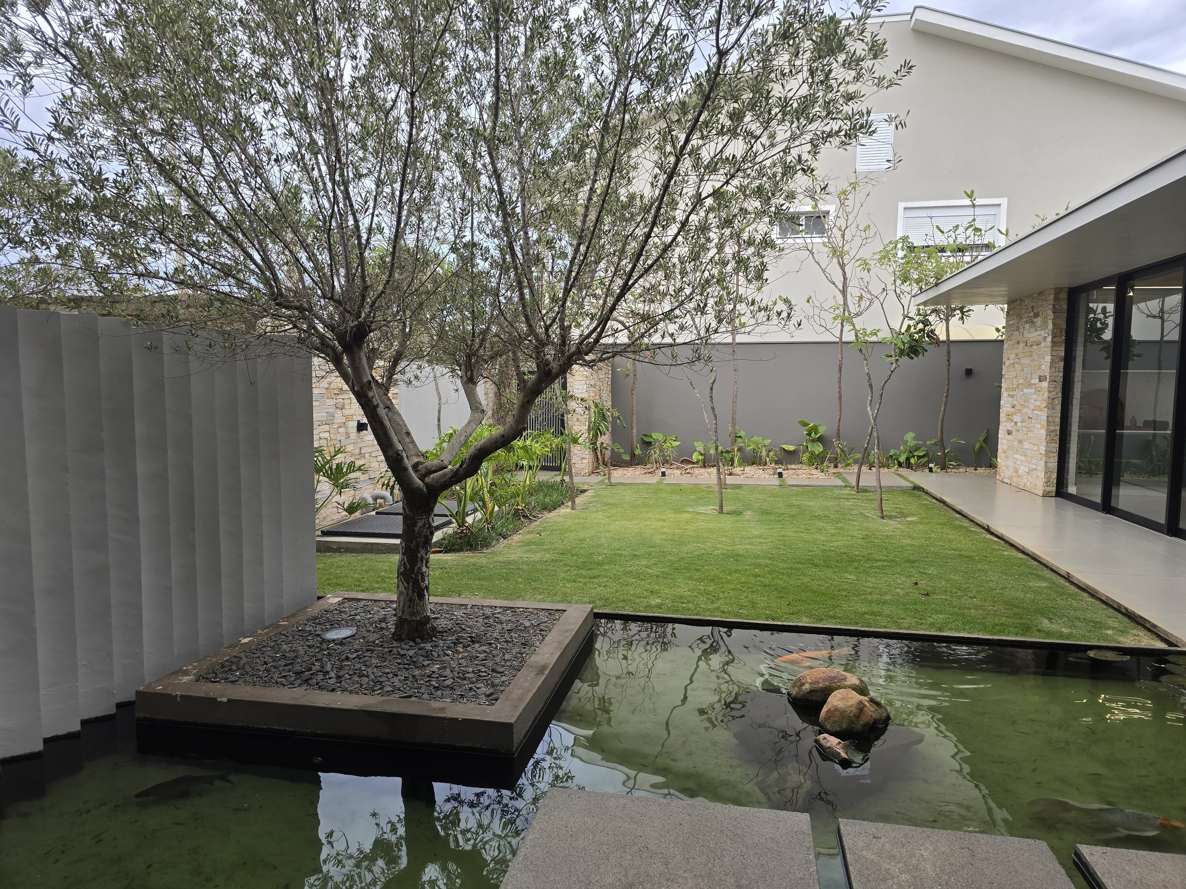 Lago Artificial com peixes e um pé de oliveira